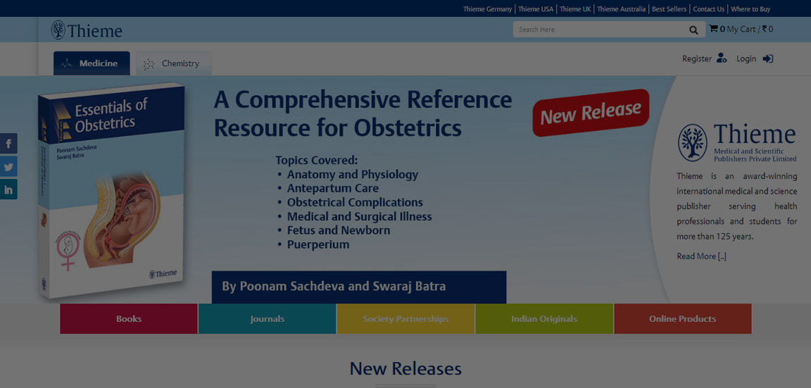 E-Definers Technology is catering the high requirements of Thieme from last 6 years. We came in contact with them when they were looking for the best website designer & developer for their Indian continent website. Our marketing team met them and inked their prerequisites. After the successful meeting, we got the project and began the work. Our team had shown its complete dedication and commitment by digging in-depth in their creative and imaginative mind. After spending the tedious hours, we were ready with the new glimpses of the old website. The following significant points were covered during the execution of projects-